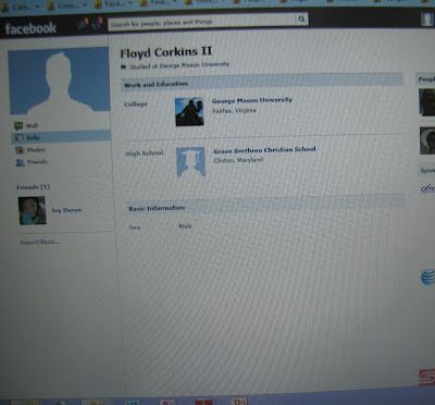 [UPDATE Thursday 8/16: There are two other Facebook pages under the name Floyd Corkins, without the "II" included. Neither reveals much, exceot one has several more friends. Someone set up a fake page called "Floyd Corkins the 2nd is awesome". There is a picture posted on it of Mr. Corkins when he was arrested yesterday after the shooting incident. I truly am praying for this guy.